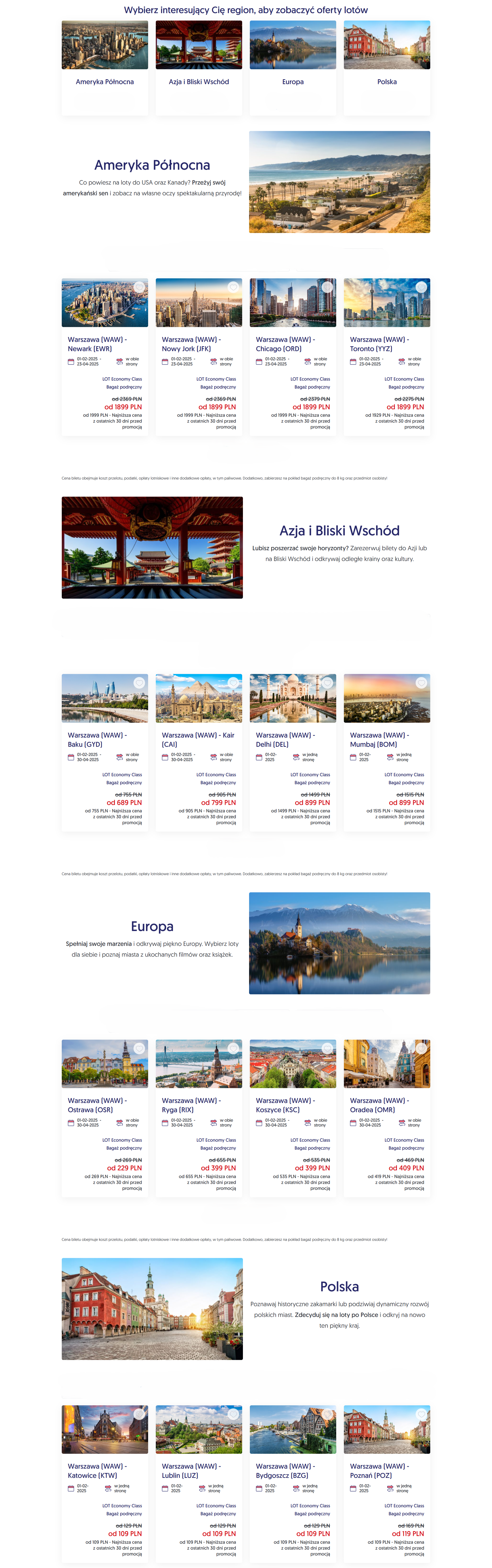 - Promocja dotyczy wybranych lotów w dwie strony po Europie oraz lotów na Bliski Wschód i do Ameryki Północnej w LOT Economy Class, oraz lotów do Azji w LOT Economy Class, LOT Premium Economy i LOT Business Class a także wybranych lotów krajowych w jedną i w dwie strony.