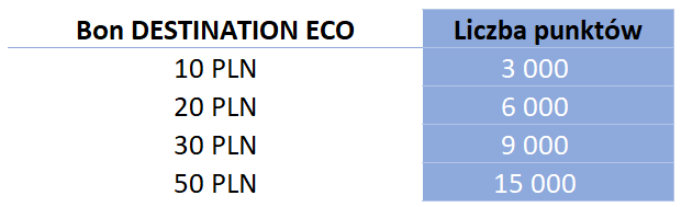 7. Voucher DESTINATION ECO nie może być zwrócony ani wymieniony na równowartość pieniężną w PLN.
